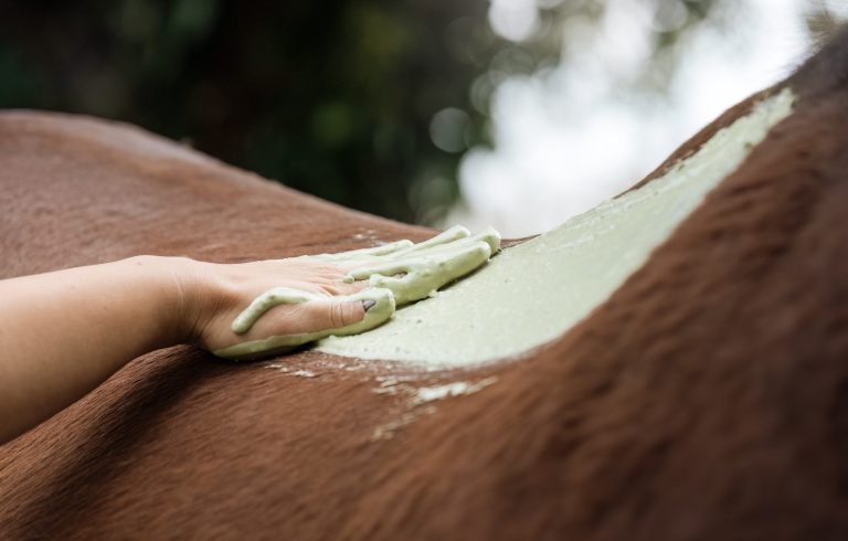 les enveloppements d'algues ou/et de boues offrent de nombreux bienfaits, tels que la détoxification, l'amélioration de la circulation sanguine et le soulagement des douleurs musculaires. Les algues, riches en minéraux et en vitamines, apportent des éléments nutritifs essentiels à la peau du cheval, tandis que la boue aide à apaiser les inflammations et à favoriser la récupération après l'effort. Ses soins contribuent à maintenir la santé et le bien-être des chevaux, tout en renforçant leur performance et leur vitalité.